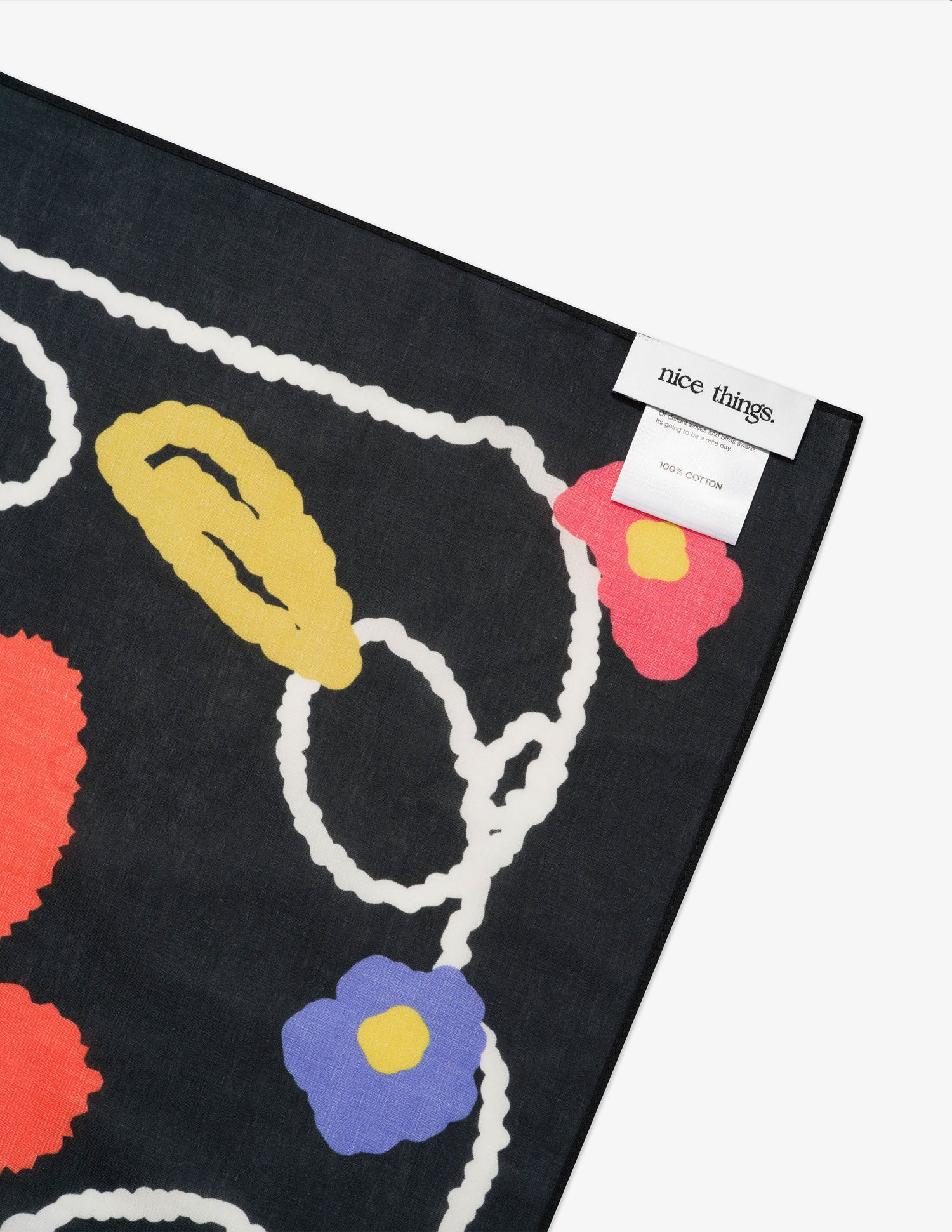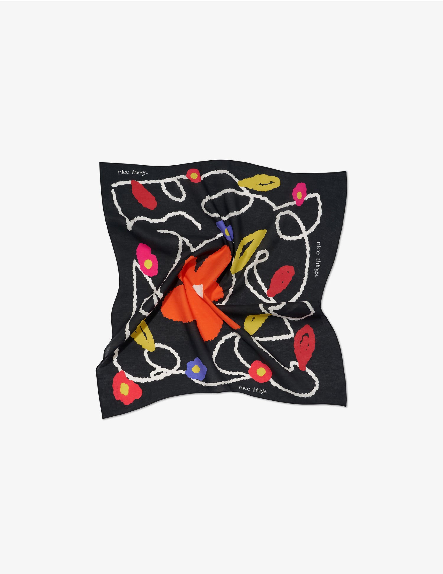 The Floral bandana is for anywhere you can tie it to. Cut from 100% cotton voile and featuring a bold floral print. It lends itself to those spring/summer days, a perfect accessory bringing a pop of life to your everyday.